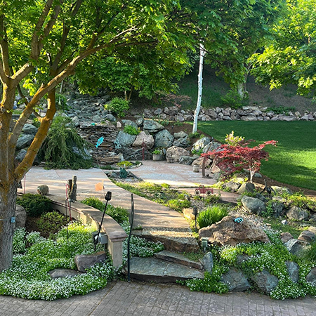 Our landscaping boulders are hand-selected from our family farm in Oxford, Idaho. Each one is naturally shaped and rich in character, with colors ranging from earthy browns to mossy greens that make every boulder unique.